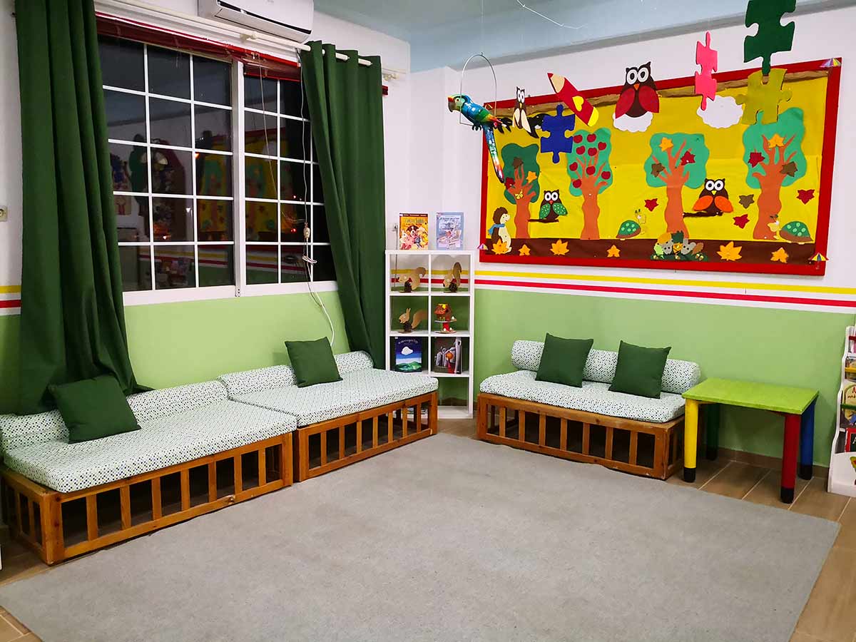 • Είναι διακοσμημένες για τον κόσμο του παιδιού, με όμορφα σχέδια και χρώματα και εξοπλισμένες με άφθονο παιδαγωγικό υλικό από την Ελλάδα και το εξωτερικό με εκπαι-δευτικές «γωνιές» και πάρα πολλά παιχνίδια.