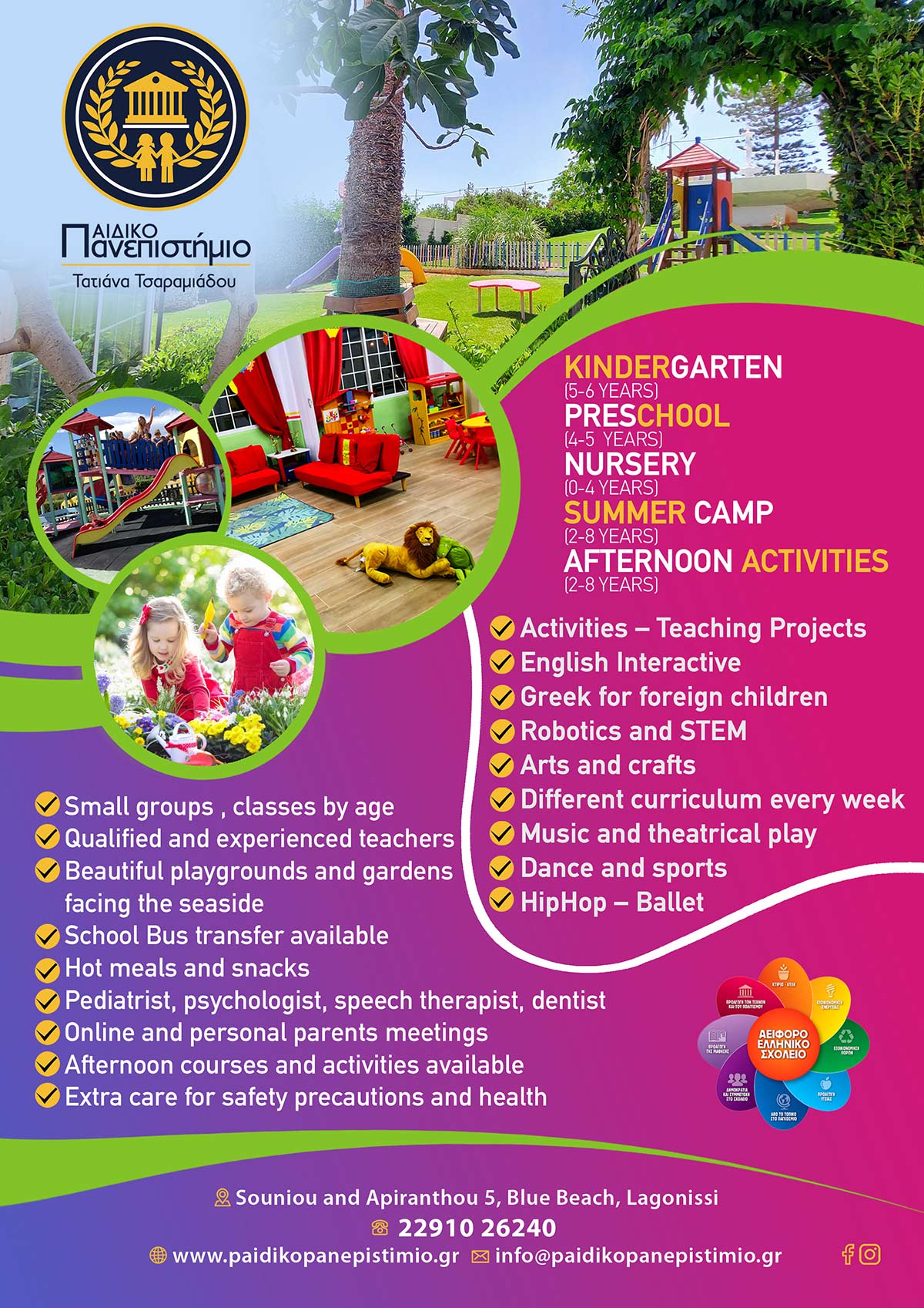 • The nursery department also works with a rich agenda and activities, sensory and motor exercises, memory and observation, exercises to improve speech, etc.